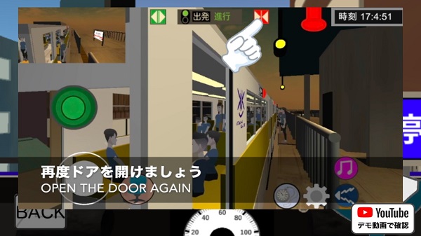 2、列车抵达站点后,点击顶部的开/关按钮,即可开启或关闭车门。操作时请注意乘客所处位置,在此期间,你还能通过点击“列车员”头像,查看车厢内乘客的就座情况。
