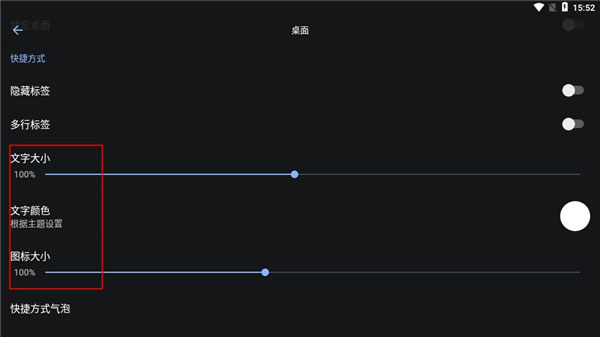 3、你还能够设置文字颜色、文字大小、图标大小等。
