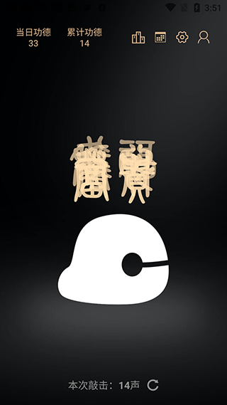 2、屏幕上方会呈现当日所积累的功德以及累计的总功德,屏幕底部则会展示当下敲击的次数,点击该区域能够进行重置操作。