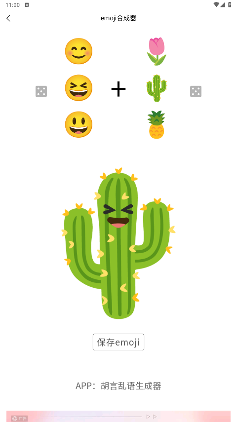 6、来到emoji表情包合成处,你能够通过上下滑动切换两种不同的表情包,随后app会自动将这两种表情包进行合成,十分有趣。