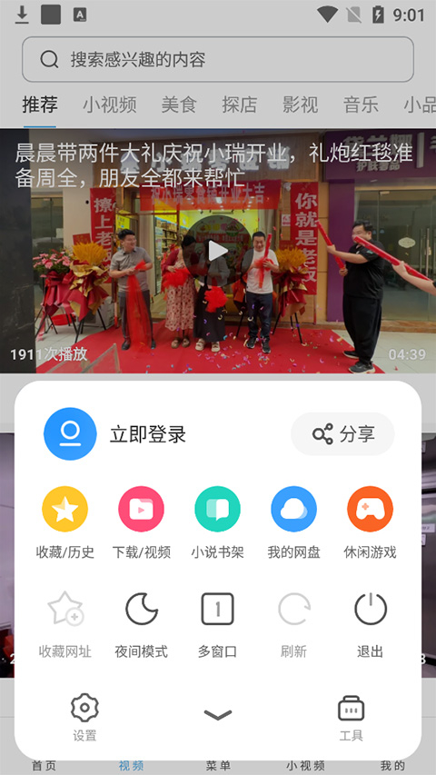菜单键可以让用户进行诸如登录、设置、下载管理等操作