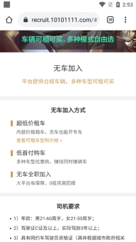 3、若选择无车加入,平台为用户提供三种模式,分别是低价租车、低首付购车以及无车全职加入。