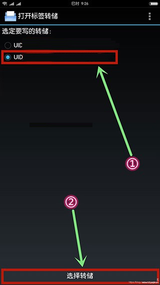 8、勾选刚才保存的标签,选中后点击软件最下方的“选择转储”,进入下一步操作(需注意,这时要把CUID空白卡放在手机NFC感应区域)。