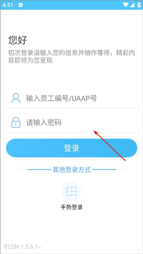 1、用户下载建行员工app,打开并输入员工编号和密码点击登录;