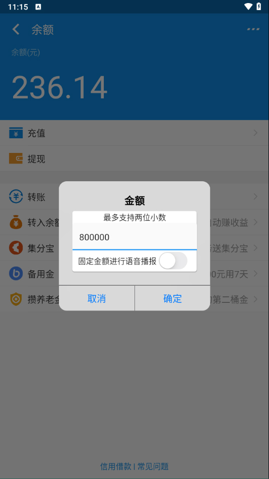 打开固定金额语音播报开关,摇动手机,就能模拟支付宝到账的播报语音。