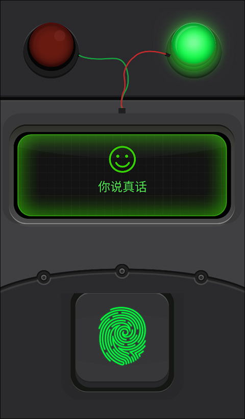 3、判断是否说谎的方式很简单,上方若显示红点,则表明正在说谎,若显示绿点,就意味着处于正常状态。