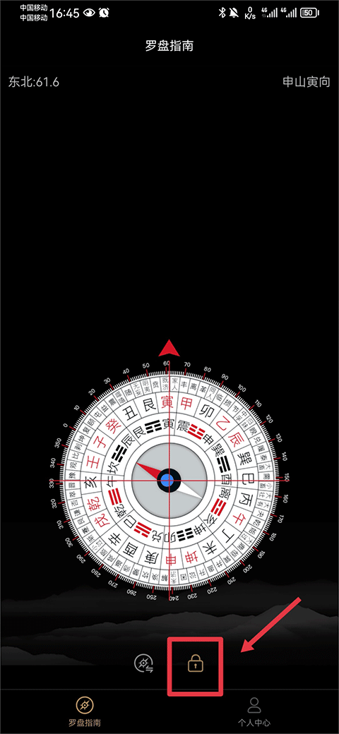 2、当测量出方位后,点击锁定按钮可以将结果方位进行锁定,这样在判断时就不会移动测量结果了