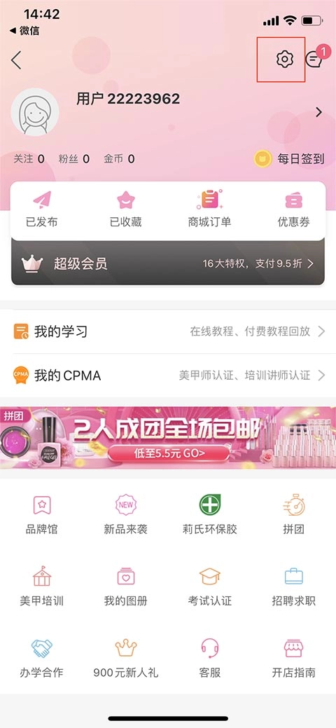 1、打开美甲帮app,进入软件界面后,选择左上角小头像的选项,