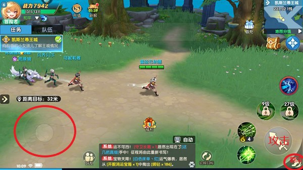 玩家点击屏幕左边任务内容图标,游戏人物就会自动接取任务,以及自动寻找任务地点。