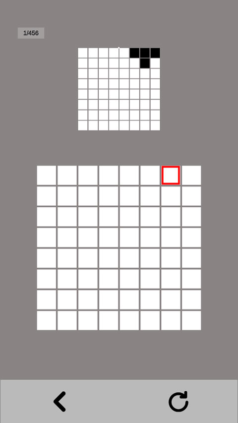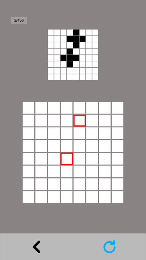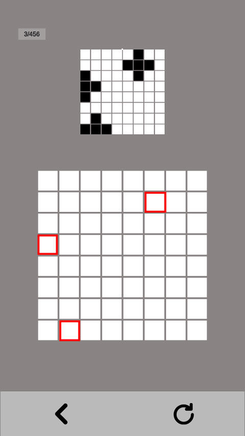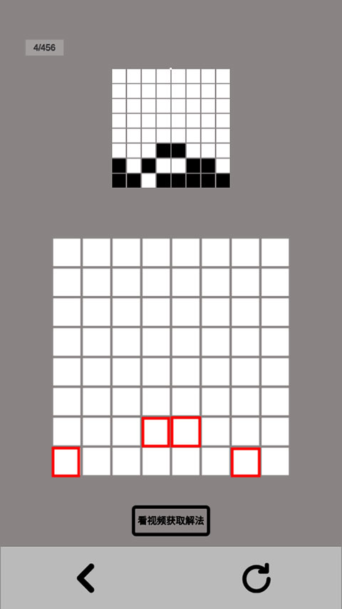 关卡3:黑白图案尚处于基础形状时,相对容易掌控。不妨多设想一下,点击边缘方块后,图案会变成怎样的形状。