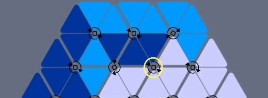 每次点击节点旋转其实是旋转此节点所接触的六个三角(即以节点为中心的正六边形);
