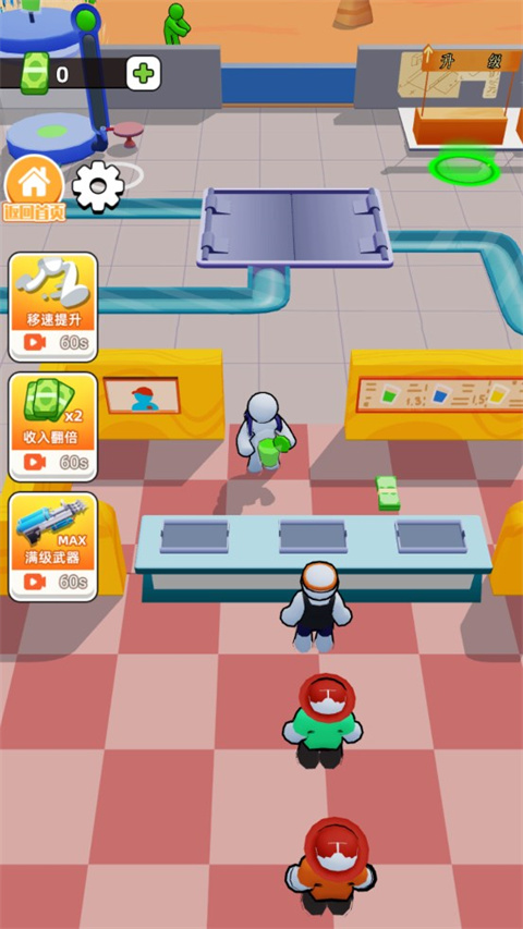 4、每次卖完果汁都有部分的钞票,等有足够的钞票就可以去升级啦!