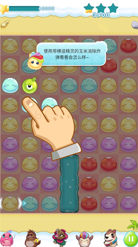 5、使用带横竖精灵的玉米消除炸弹看看会怎么样~