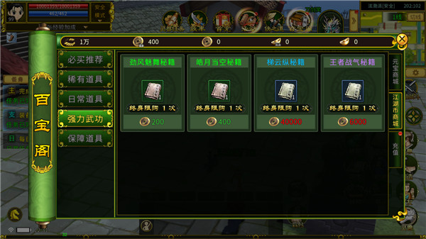 以上武功秘籍均可从【百宝阁】江湖币商城获取,秘籍在手,天下我有!需要注意的是学习新武功还需要达成一定的历练值,击杀野怪可获得大量的历练值。