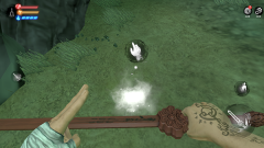 随后蹲下,拿起剑对着脸戳(水猴子趴在地上,像我这样手残的,要是不蹲下,真的根本就瞄不准)