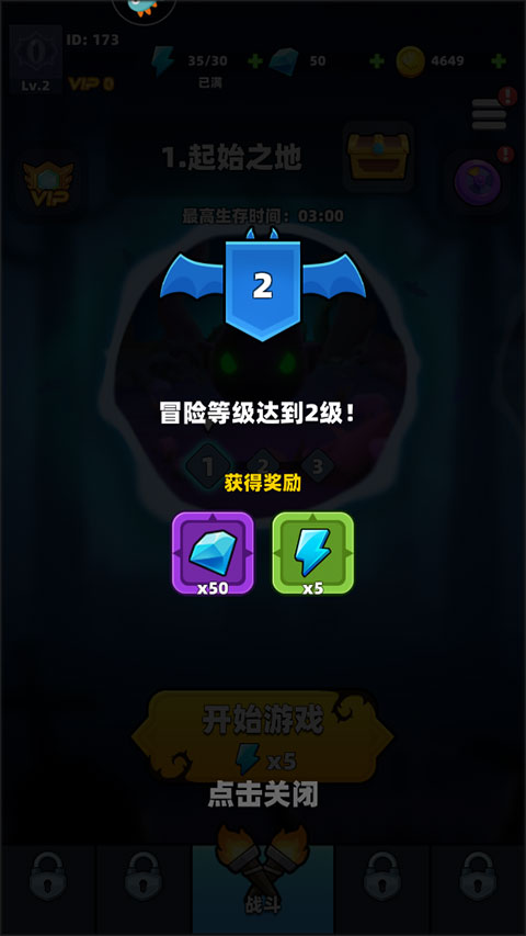 1、下载安装好终极闯关手游官方版,点击开始进入游戏。