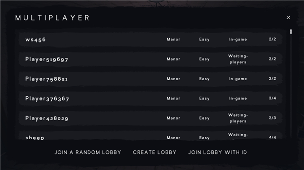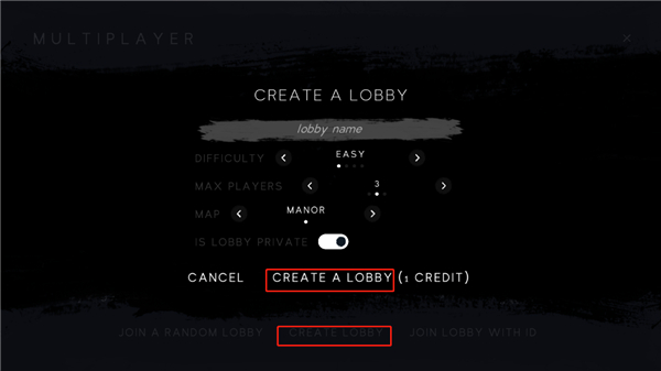 3、也可以点击create lobby,选择好房间的难度,人数点击创建房间即可;