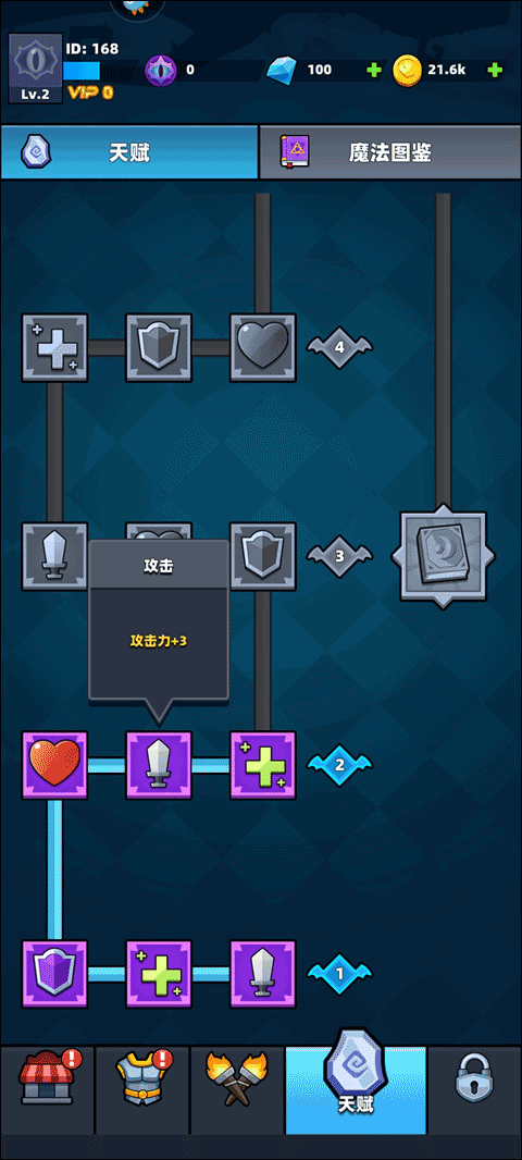在游戏里,借助升级时所选的技能能够开启相应的魔法。