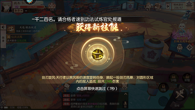 2、在这里打败一群敌人后会获得新技能的奖励,点击任意一处关闭提示;