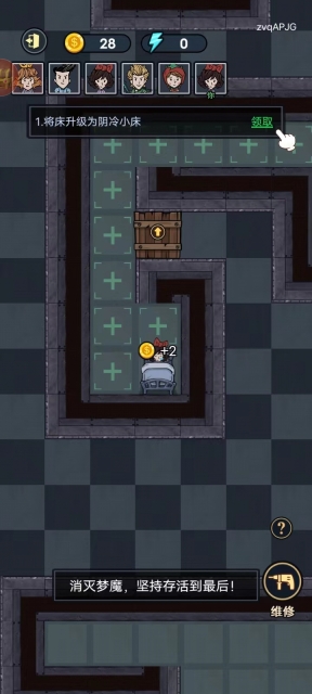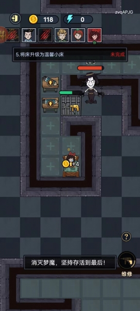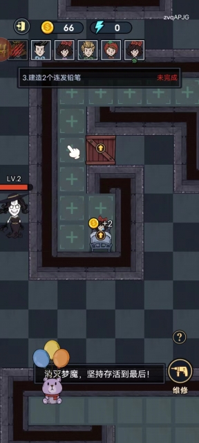 7、点击房间内的空地,能够建造连发铅笔或者老式发电机。建造老式铅笔后,在梦魇来袭时可对其展开攻击。鉴于随着游戏进程推进,梦魇会愈发强大,所以玩家必须持续升级老式铅笔以及大门,以此击退梦魇。