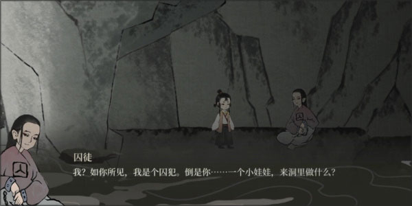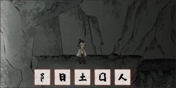 2、进入山洞之后我们会发现一个囚犯,完成剧情我们点击囚犯我们就可以获得一个囚字,然后我们把囚字拆分成人字和口字;