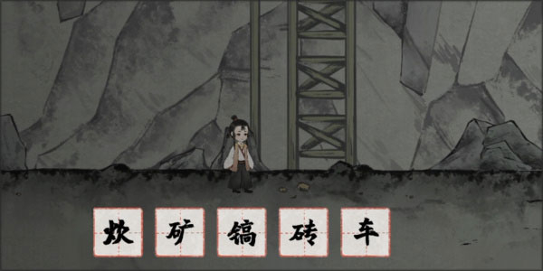 1、首先我们进入关卡之后我们一路上直接进行捡拾道具我们可以获得炊、矿、镐、砖、车这五个字;