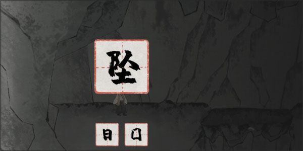 3、然后我们再次进行组合,人、土、耳朵旁就可以组合成坠字,我们把坠字拖到前面的石头上我们然后从上面下去就可以通关了;