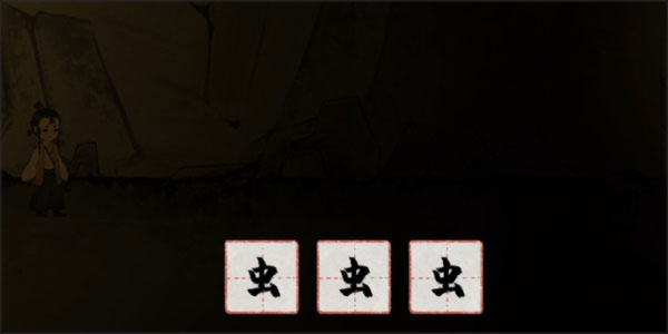 1、首先我们进入关卡之后我们点击三个萤火虫之后就可以获得3个虫字,然后往前面走我们可以看到火光点击可以获得火字;
