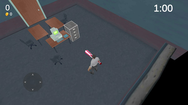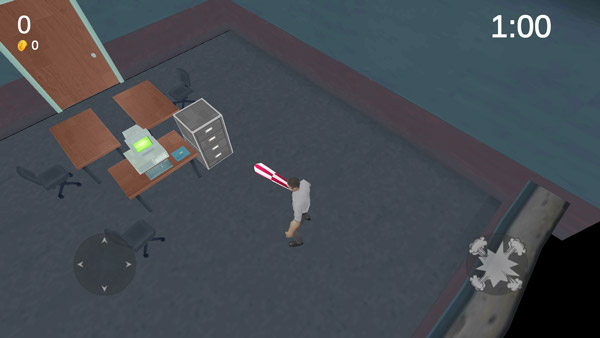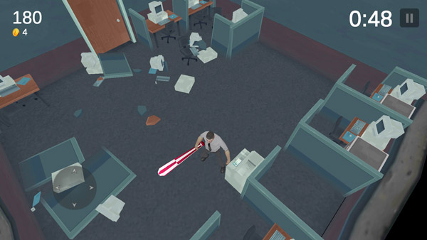 游戏的玩法与操作极其简单轻松,玩家能够操控角色自如移动,穿梭于各个房间进行探索与破坏,尽情体验解压时刻。在游戏推进过程中,会不断出现诸多障碍。每当成功完成一次挑战,游戏便会依据你在场景内的表现予以打分,同时你还能收获金币奖励。利用这些金币,你可以兑换各类武器、时装等物品。不同武器在攻击力、攻击速度等属性方面各有差异,挑选一把称手的武器,畅快淋漓地去破坏,把这间办公室砸个稀烂!