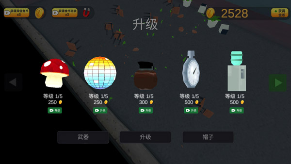 2. 点击升级页面,你会看到各式各样的道具。玩家可自行挑选道具来进行升级,从而为关卡内的挑战带来更多益处!