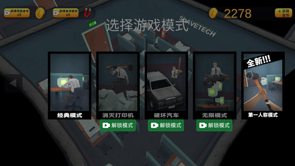 3、使用各种道具去摧毁你眼前的办公室,损坏的道具越多获得的奖励越多。