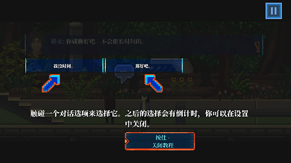 5、触碰一个对话选项来选择对话。之后的选择会有倒计时,你可以在设置中关闭。