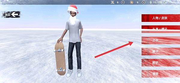 2、按照个人喜好,为角色挑选衣服、裤子、鞋子以及滑板,完成后返回游戏开始界面。
