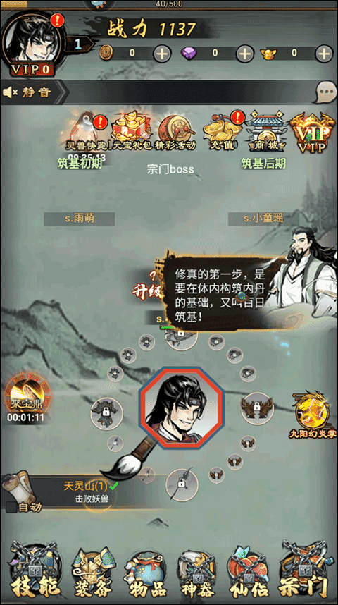 2、首先,进入游戏后即可看到主角开始历练,玩家不需要操作即可完成诸多任务,在此期间玩家可以好好欣赏游戏的玩法;