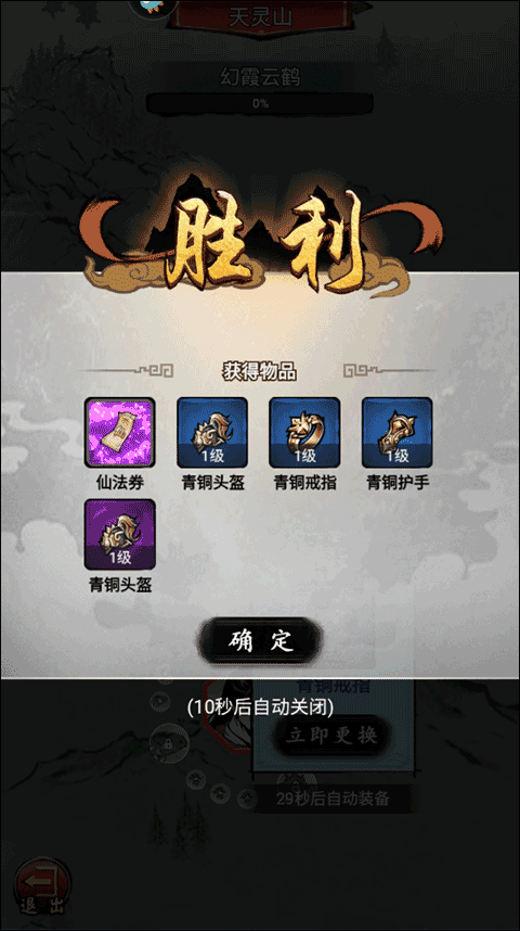 5、在此处,经过一番时间的搏斗,玩家取得胜利。此时,玩家既可以找到并点击“确定”按钮选项,也能够等待10秒,让胜利界面自动关闭。