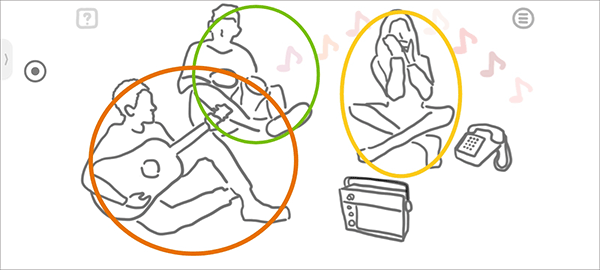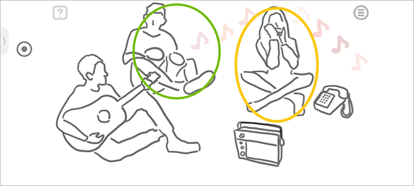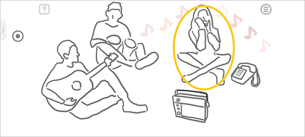 再点击音响和手机之后,第一个吹口笛的小姐姐一共出现了7中音符所以排序1234567。