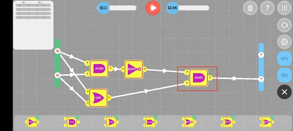 3、把所有的基础逻辑门拖到正确的位置然后开始输出。