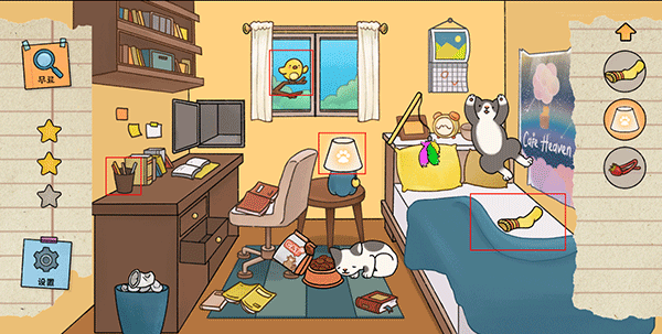 2、寻找各个场景里被隐藏的可爱猫咪,非常考验玩家的眼力和观察能力;