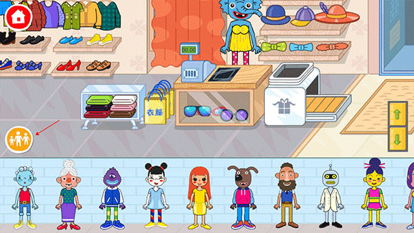 4、轻点左下角的人物按钮,就能添加更多萌趣可爱的人物到房间里。若想将人物移出,长按并拖动即可。
