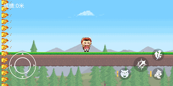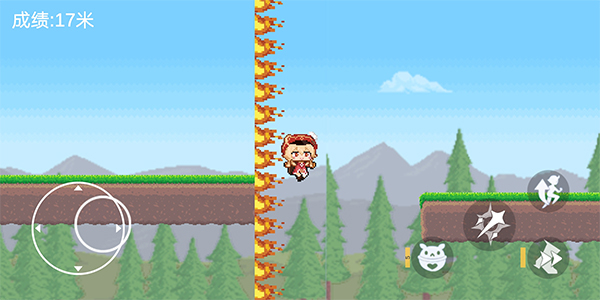 2、游戏一开始,可莉身后就会出现一堵由火焰构成的墙,赶紧往前冲,千万别让可莉被烫到!一旦被烫到,游戏就失败啦!