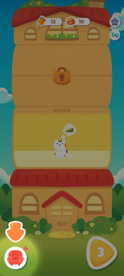 2. 轻点猫咪momo头上的小红旗,就能开启游戏。