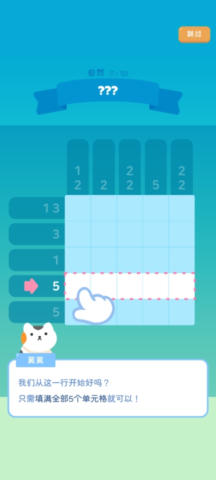3、你留意到每行旁边的数字了吗?你只要确保填色单元格的数量和这个数字一致就行。