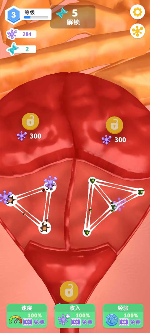 1只有在此持续对细胞的连接方式进行调整,方可实现更有效的出击,并自如地躲避病毒的攻击。
