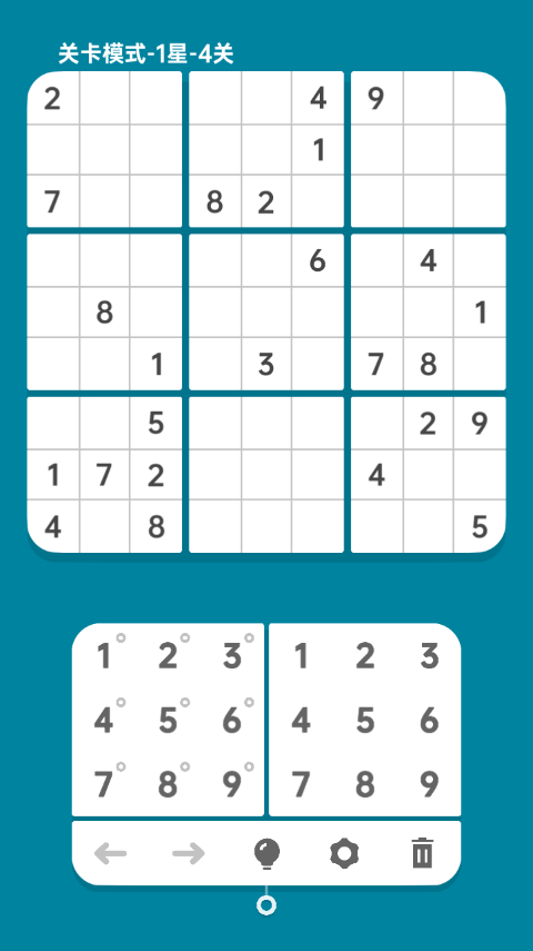 一星和二星难度的关卡,能够助力大家锻炼基础速度。玩法很简单,可直接无脑循环,开启辅助工具后,从1到9逐个排查,找出同行、同列以及同宫格中数字的唯一项,持续循环这般操作,就能顺利通关。这主要是对眼疾手快能力的训练。当你能稳定在3到4分钟完成时,要是觉得没意思,就可以尝试下面难度的关卡了。