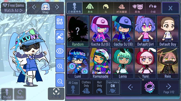 3、【随机抽奖】页面包含很多可爱的加查角色,需要钻石来抽奖获取。