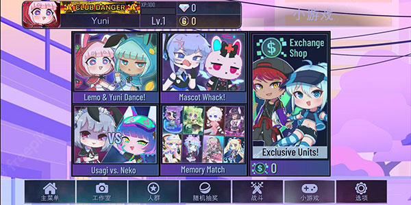 4、点击【小游戏】,就能参与加查系列的舞蹈游戏,或是记忆匹配关卡小游戏。每成功通过一关,都可获得钻石奖励哟。