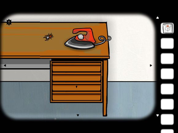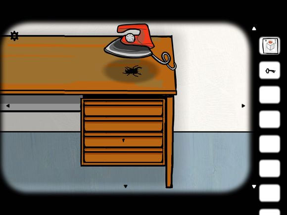4、接下来将出现残忍的一幕。点击桌子,切换至熨斗场景,点击熨斗使其抬起,接着点击小虫,让它走过去……