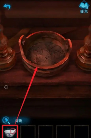 3、点击神龛,对香炉使用【寿碗】获得【一碗香灰】和【香灰铲】