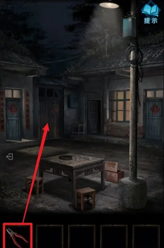 11、回到院子,进入柴房,使用【火钳】开灯。