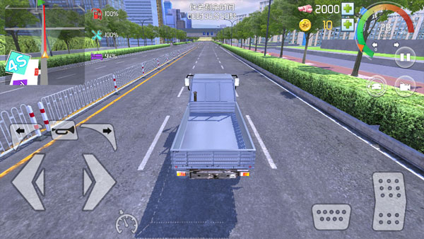 1、打开游戏后,会有一位中国女孩引导开启新手指导。一开始,操作油门和刹车,让车辆向前行驶一段距离后,按下刹车按钮停车。